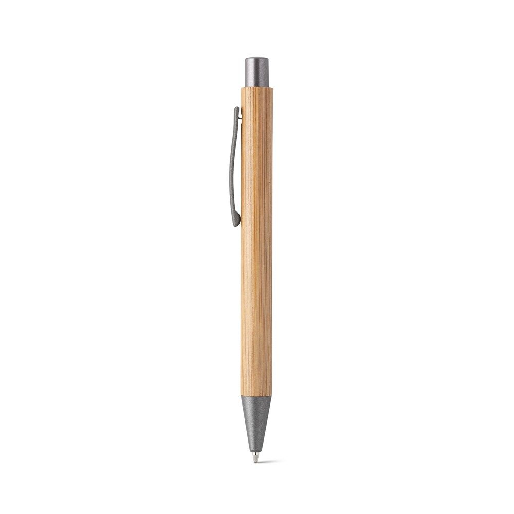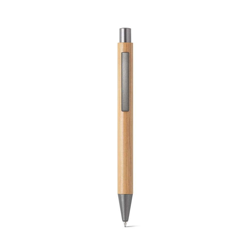 ESFEROGRÁFICA EM BAMBU COM CLIPE DE METAL. ESCRITA EM AZUL ATÉ 1,5 KM. A COR E O RESULTADO DA IMPRESSÃO NOS MATERIAIS NATURAIS PODE VARIAR ENTRE PRODUTOS. Ø11 X 137 MM