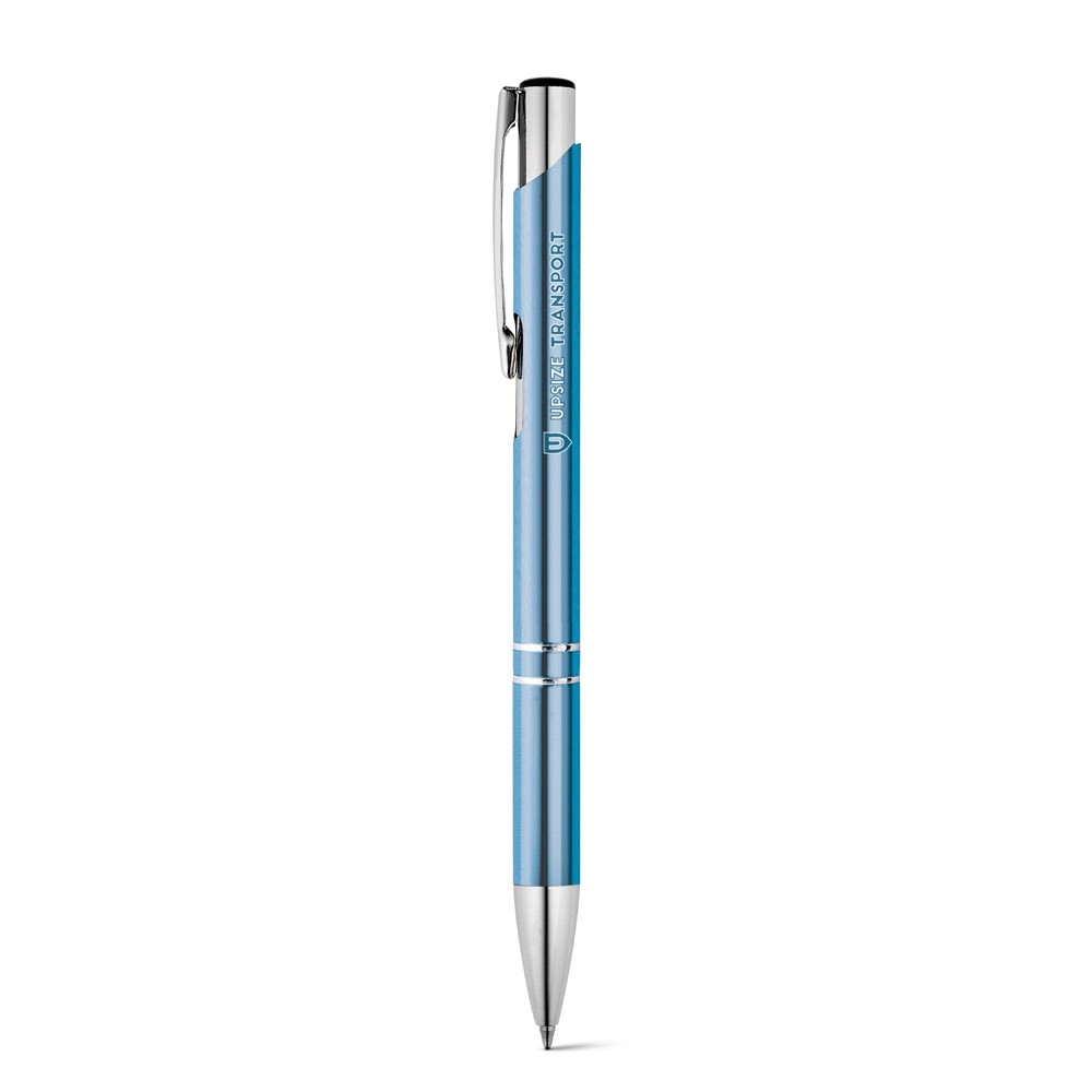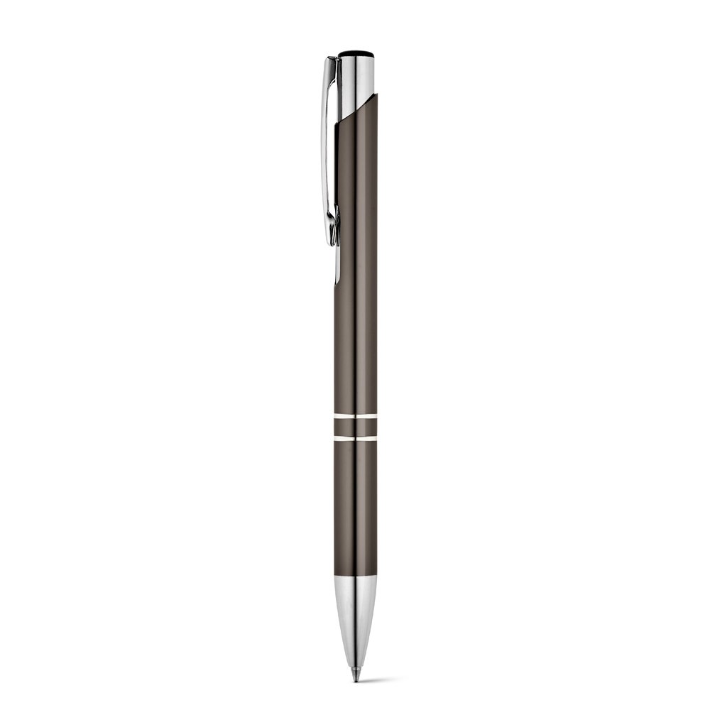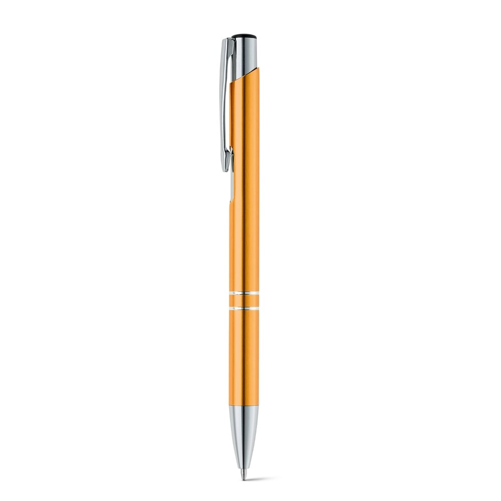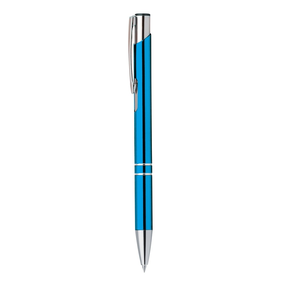 CANETA METAL INTEIRA COLORIDA COM DETALHES PRATA. CLIP METAL COM A PONTA DO ACIONADOR PRETO, PARTE INFERIOR COM DOIS ANÉIS PRATA. ACIONA POR CLIQUE. TAMANHO TOTAL: 14 X 3.3CM. PESO DO PRODUTO: 16 GRAMAS.