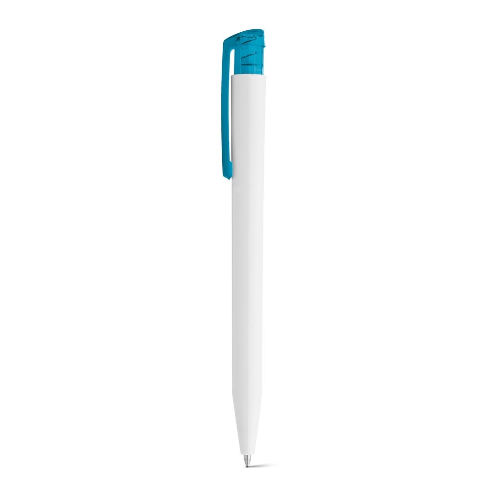 ESFEROGRÁFICA EM ABS COM ACABAMENTO BRILHANTE E CLIPE TRANSLÚCIDO COLORIDO. ATÉ 1,5 KM DE ESCRITA. Ø11 X 136 MM