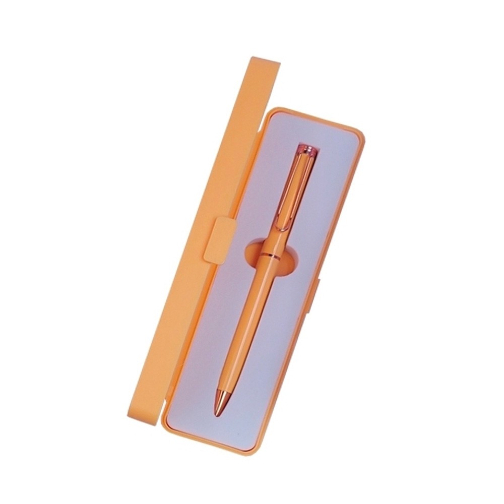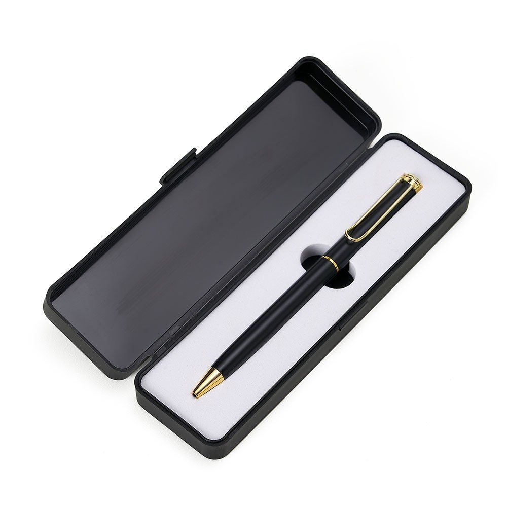 CANETA METÁLICA EM ESTOJO PLÁSTICO COM BERÇO ESPUMADO, CANETA BRANCA COM DETALHES EM BRONZE E CANETA PRETA COM DETALHES EM DOURADO, POSSUI ACIONAMENTO POR ROTAÇÃO E CARGA ESFEROGRÁFICA AZUL. ALTURA: 16.8 X LARGURA: 4.7 X ESPESSURA: 2CM. MEDIDAS APROXIMADAS PARA GRAVAÇÃO: 15 X 3.5CM. PESO APROXIMADO: 64 GRAMAS.