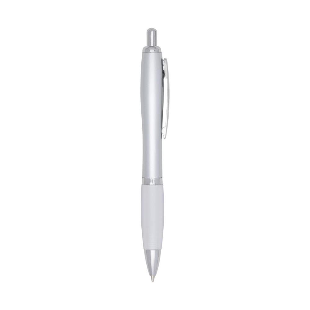 CANETA PLÁSTICA PRATA COM ANEL E DETALHE EMBORRACHADO COLORIDO. CLIP DE METAL, ACIONA POR CLIQUE. OBS.: EXCLUSIVAMENTE A COR PRATA É INTEIRAMENTE PLÁSTICA, ELA NÃO POSSUI O DETALHE INFERIOR EMBORRACHADO. MEDIDAS PARA GRAVAÇÃO: 7 X 3.6CM. TAMANHO TOTAL: 14 X 3.6CM. PESO DO PRODUTO: 10 GRAMAS