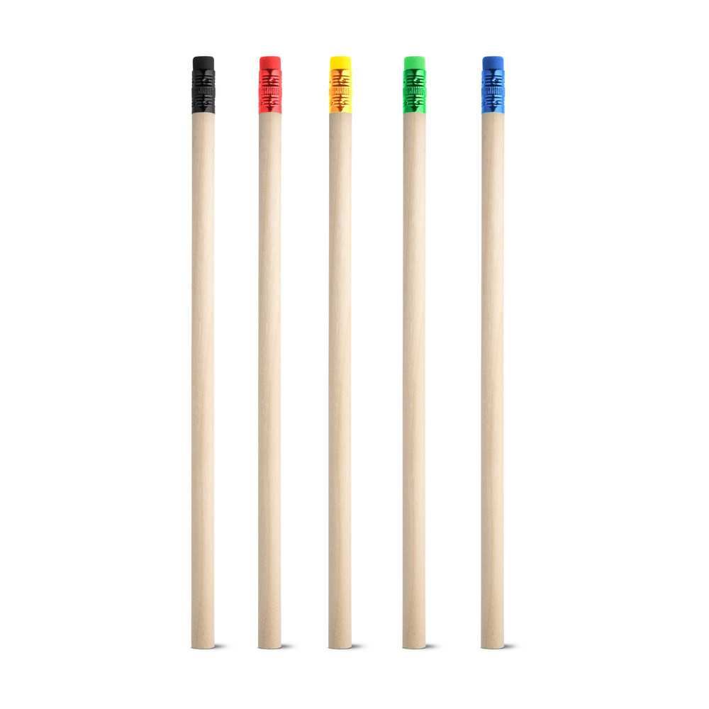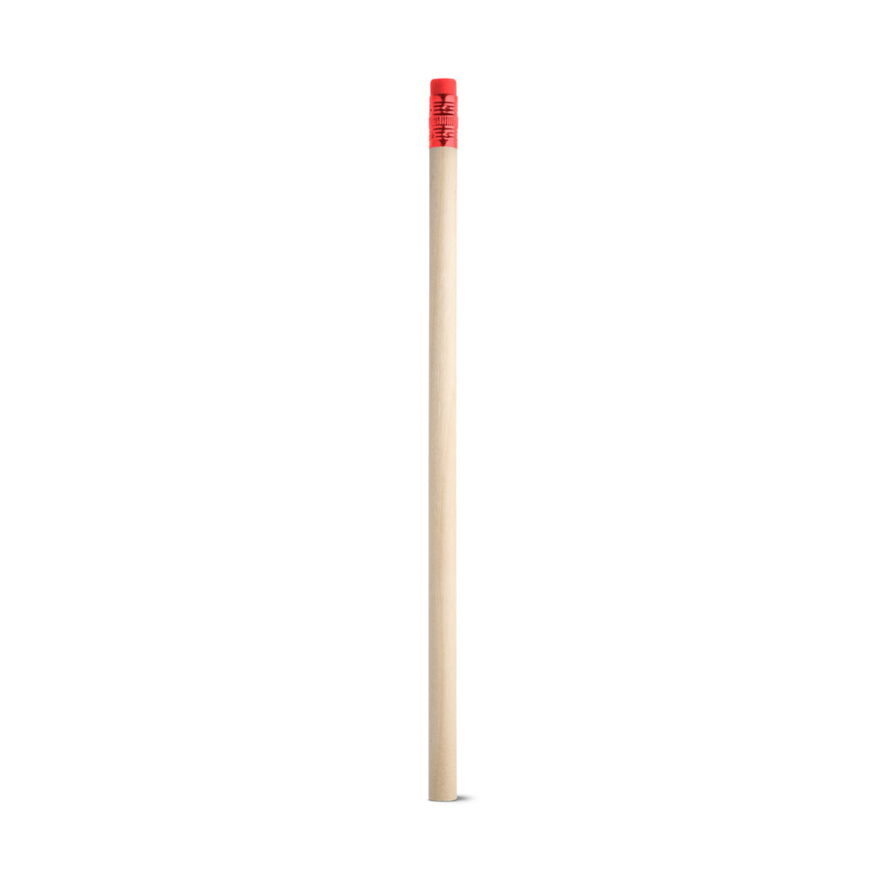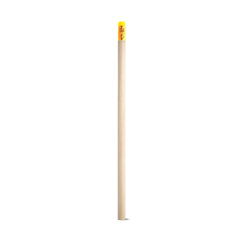 LÁPIS EM MADEIRA NATURAL COM BORRACHA NO TOPO. GRAU DE DUREZA: HB. PRODUTO CERTIFICADO DE ACORDO COM A PORTARIA INMETRO Nº423 DE 8/OUT/2021. A COR E O RESULTADO DA IMPRESSÃO NOS MATERIAIS NATURAIS PODE VARIAR ENTRE PRODUTOS. Ø7 X 190 MM