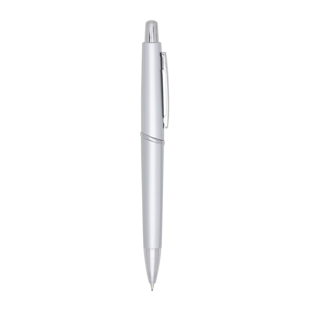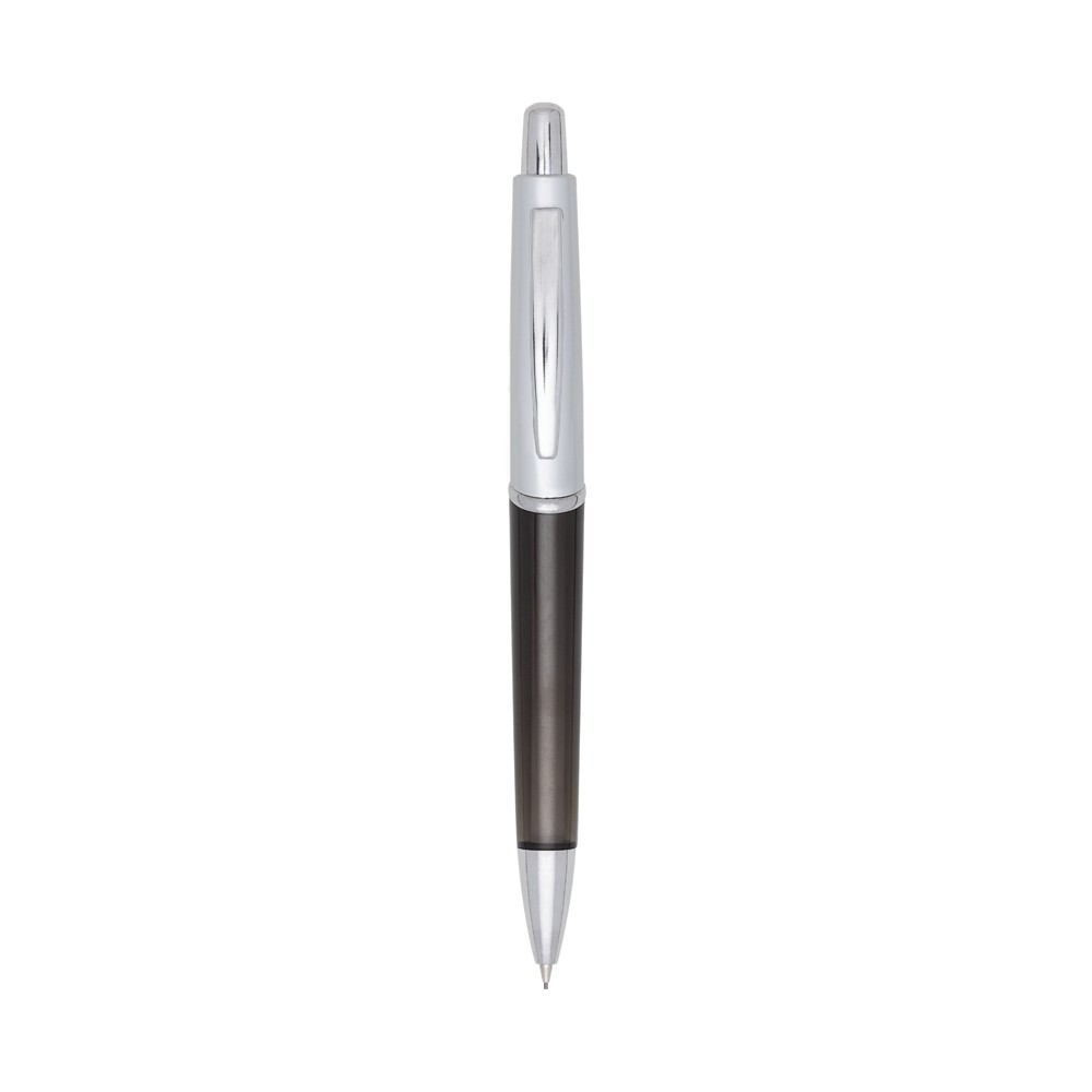 LAPISEIRA PLÁSTICA PRATA COM DETALHES COLORIDOS TRANSLÚCIDOS. CLIP DE METAL, ACIONA POR CLIQUE. MEDIDAS PARA GRAVAÇÃO: 4 X 8CM. TAMANHO TOTAL: 13.8 X 1.5CM. PESO TOTAL: 9 GRAMAS.
