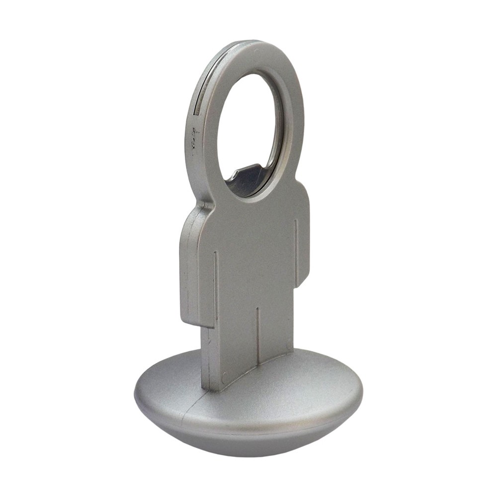 Abridor de garrafa no formato de homem, com peso na base que permite movimento na peça. Material de plástico resistente. Medidas para gravação: 2.3 x 2.8cm. Tamanho total: 10 x 4.3cm. Peso do produto: 63 gramas. - Informação Adicional