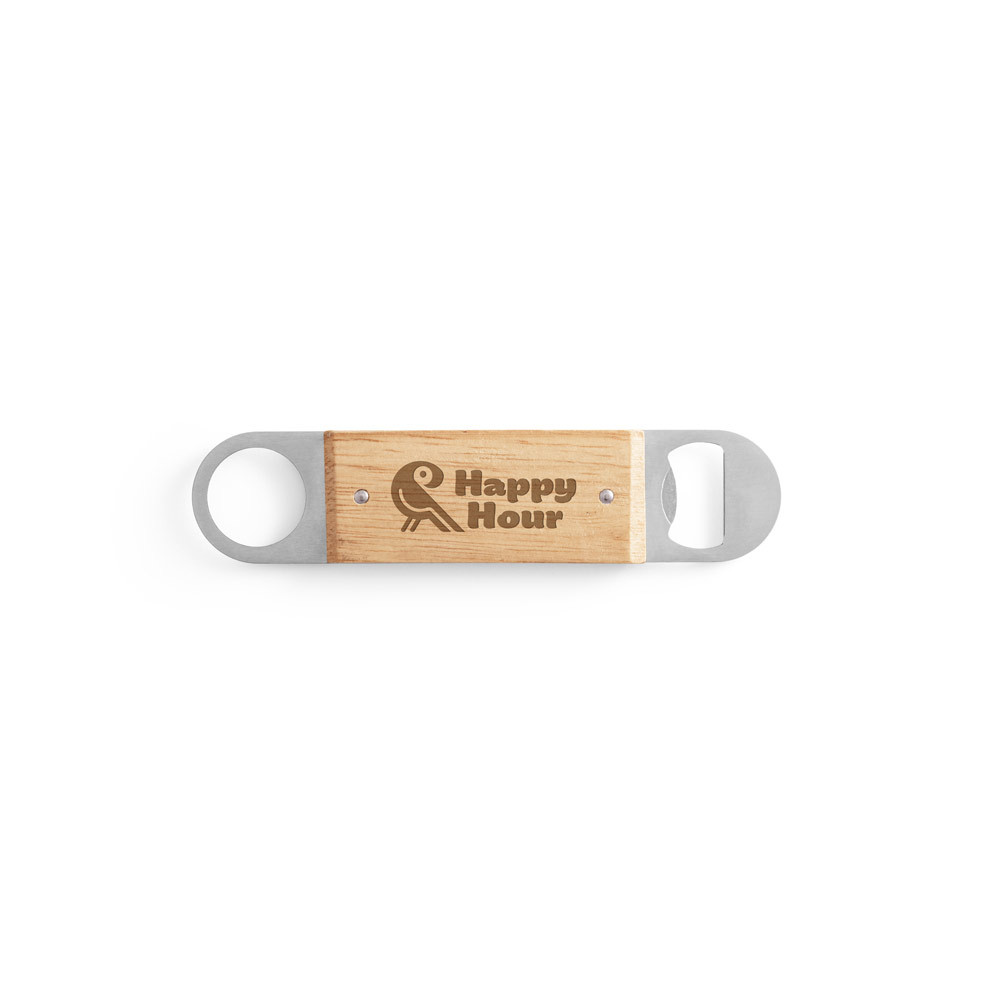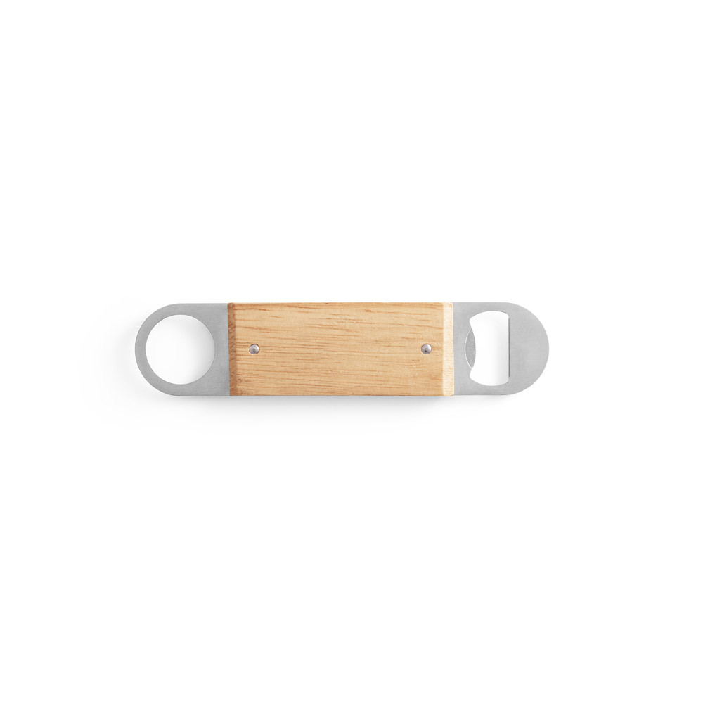 ABRIDOR DE GARRAFAS EM AÇO INOX COM CORPO EM MADEIRA DE FAIA. DISTINTIVO DOS RESTANTES POR CONTER UM ABRIDOR DE UM LADO E UMA ARGOLA PARA FACILITAR SUA ARRUMAÇÃO. A COR E O RESULTADO DA IMPRESSÃO NOS MATERIAIS NATURAIS PODE VARIAR ENTRE PRODUTOS. 40 X 180 X 10 MM