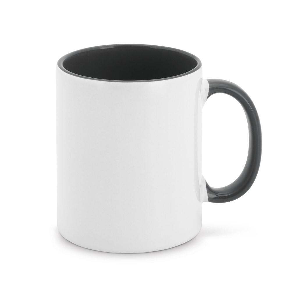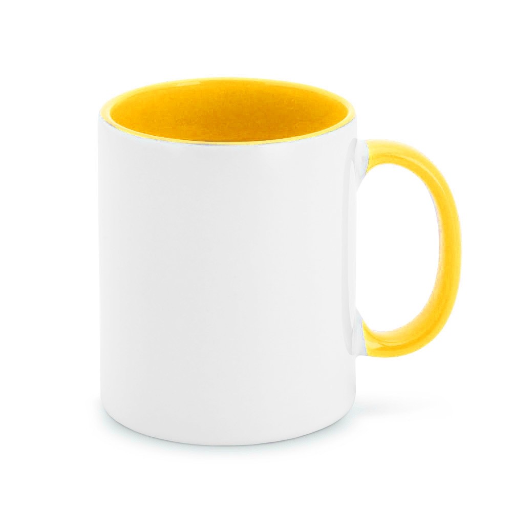 Caneca de cerâmica 325ml branca com borda e cabo colorido. Medidas aproximadas para gravação: 9 x 7cm. Tamanho total aproximado: 9.6 x 11.7 x 26.2cm. Peso aproximado: 325 gramas.