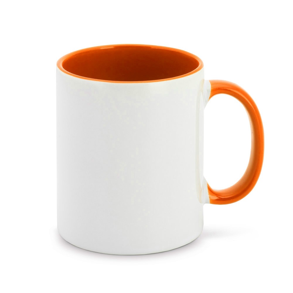 Caneca de cerâmica 325ml branca com borda e cabo colorido. Medidas aproximadas para gravação: 9 x 7cm. Tamanho total aproximado: 9.6 x 11.7 x 26.2cm. Peso aproximado: 325 gramas. - Informação Adicional