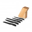 SUPORTE PARA FACAS EM MADEIRA DE PINHO. INCLUSO CONJUNTO DE 5 FACAS DE COZINHA: FACA UTILITÁRIA MÉDIA, FACA UTILITÁRIA PEQUENA, FACA PARA VEGETAIS, FACA PARA PÃO E FACA PARA CARNE. PEÇAS EM AÇO INOX E PP, CABO COM ACABAMENTO EMBORRACHADO. CERTIFICAÇÃO EU FOOD GRADE. A COR E O RESULTADO DA IMPRESSÃO NOS MATERIAIS NATURAIS PODE VARIAR ENTRE PRODUTOS. 150 X 310 X 85 MM - Informação Adicional
