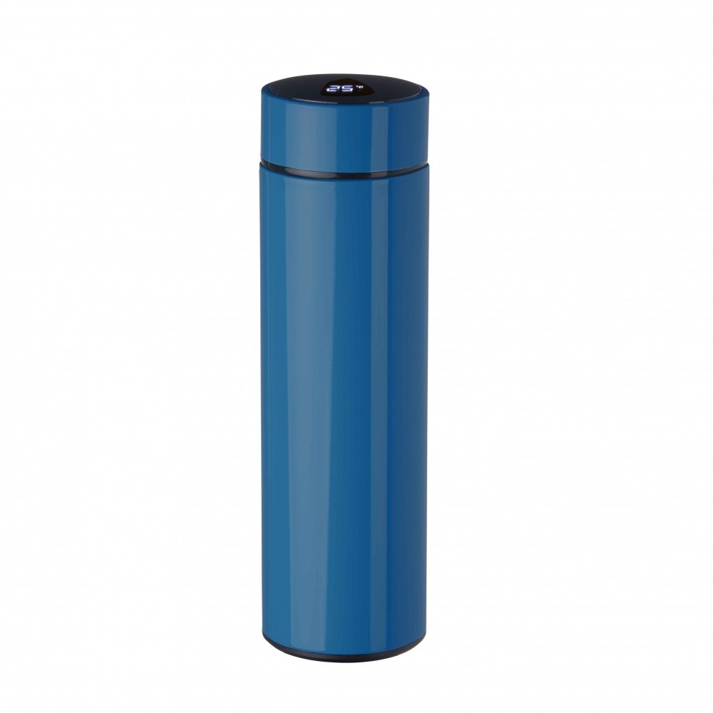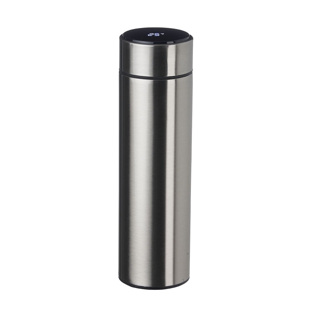 Garrafa inox 450ml com parede dupla, infusor, e Display LED com termômetro digital na tampa para indicar a temperatura do líquido. Conserva temperatura quente ou fria. Altura: 22.7 x Largura: 6.5 x Circunferência: 20.4cm. Medidas aproximadas para gravação: 18 x 7cm. Peso aproximado: 277 gramas. - Informação Adicional