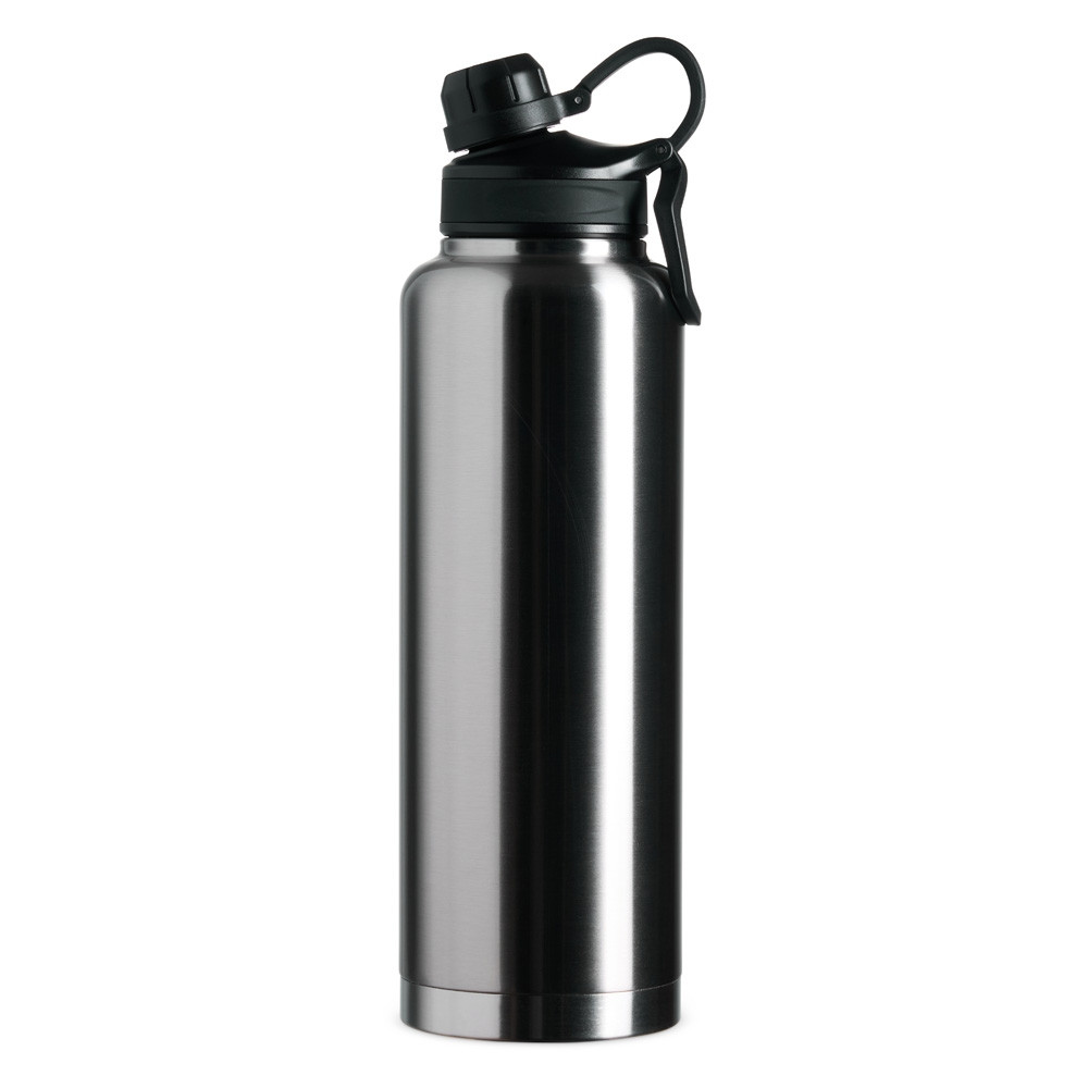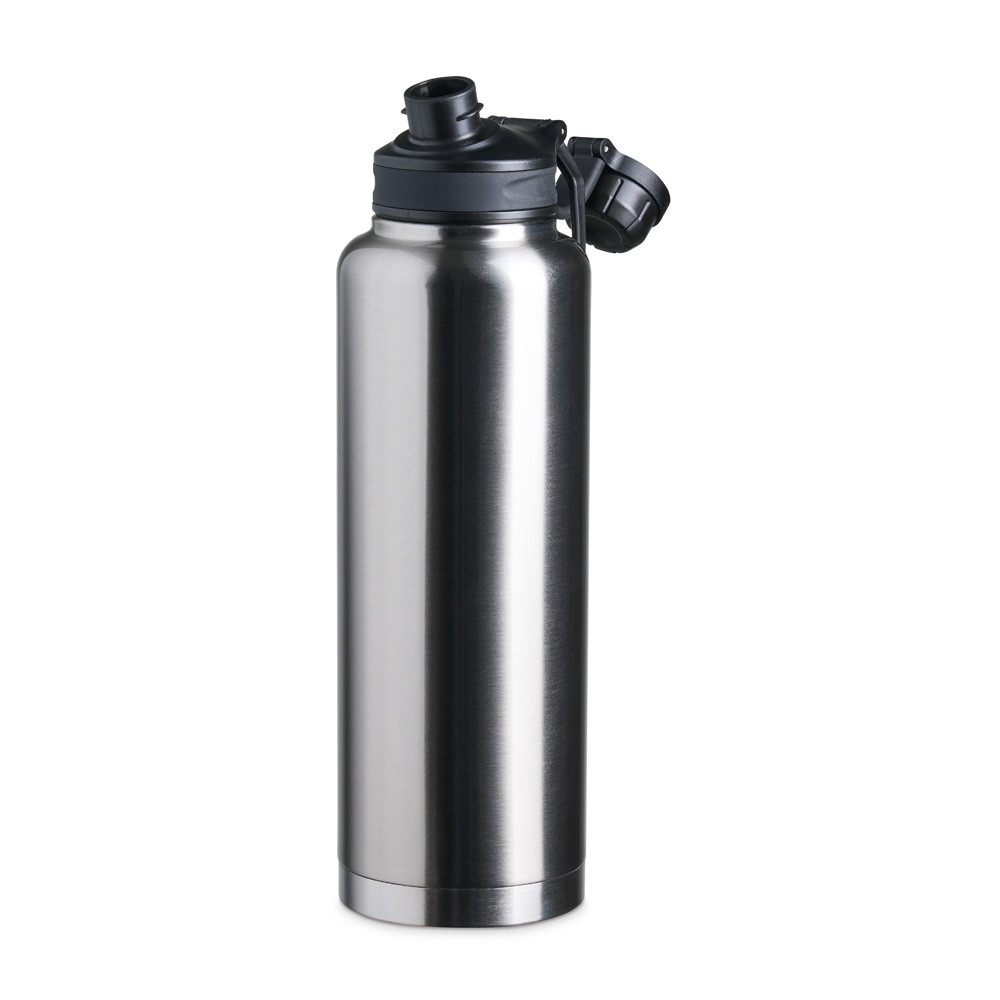 GARRAFA TÉRMICA EM INOX 304 DE PAREDE DUPLA COM CAPACIDADE DE 1,5 LITROS. POSSUI TAMPA COM ALÇA PARA TRANSPORTE E TAMPA ROSQUEÁVEL DE PROTEÇÃO PARA O BOCAL. ALTURA: 33.5CM X LARGURA: 9.7CM X CIRCUNFERÊNCIA: 30.5CM. MEDIDAS APROXIMADAS PARA GRAVAÇÃO: 21CM X 4.5CM. PESO APROXIMADO: 585 GRAMAS.