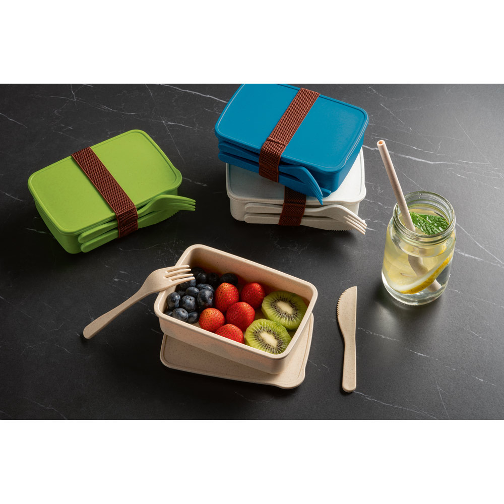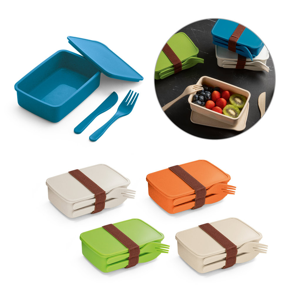 MARMITA HERMÉTICA EM FIBRA DE BAMBU (60%) E PP (40%) COM COMPARTIMENTO COM CAPACIDADE ATÉ 600 ML. CONTÉM BANDA ELÁSTICA COM SUPORTE PARA 2 TALHERES, INCLUSOS: GARFO E FACA. APTO PARA MICRO-ONDAS (RETIRAR A TAMPA). CERTIFICAÇÃO EU FOOD GRADE. 165 X 111 X 50 MM