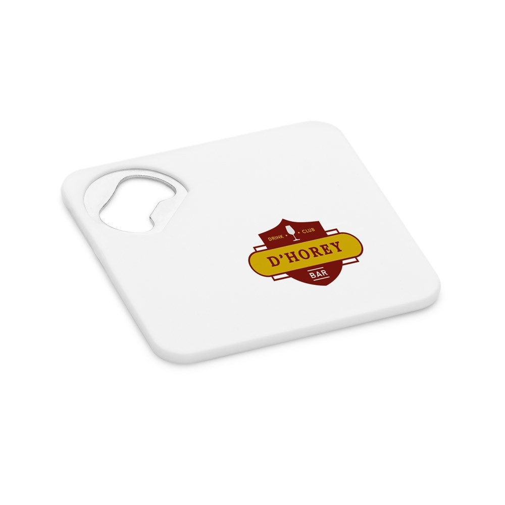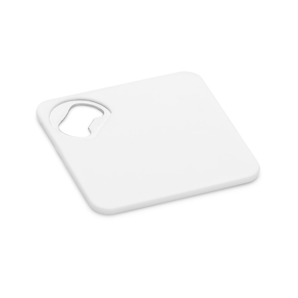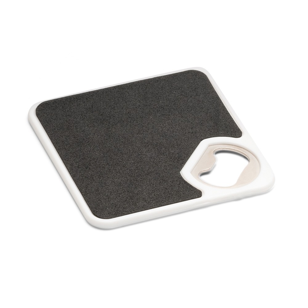 PORTA COPOS EM ABS COM ABRIDOR DE GARRAFAS E ESPONJA ANTIDERRAPANTE NA BASE. 82 X 82 X 4 MM