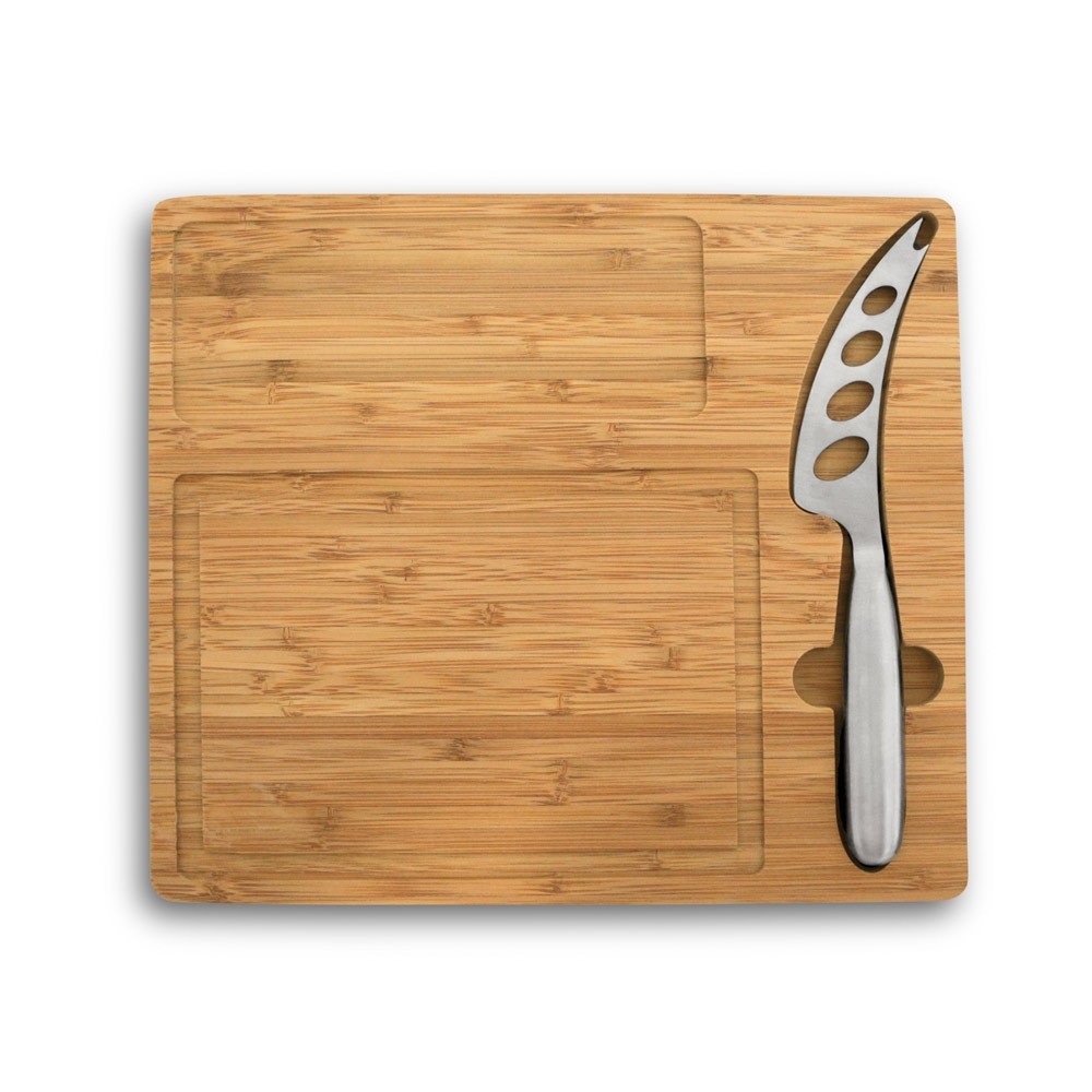 TÁBUA DE QUEIJOS EM BAMBU COM FACA INCLUÍDA. FORNECIDA EM CAIXA DE PAPEL KRAFT. 300 X 260 X 15 MM | CAIXA: 307 X 267 X 21 MM
