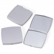 ESPELHO PLÁSTICO DUPLO SEM AUMENTO, FRENTE E VERSO LISO. ALTURA: 6.7 X LARGURA: 6.7 X ESPESSURA: 0.9CM. MEDIDAS APROXIMADAS PARA GRAVAÇÃO: 6 X 6CM. PESO APROXIMADO: 41 GRAMAS.