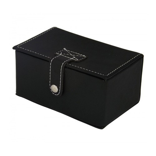 Kit engraxate estojo em couro sintético com 5 peças, costura branca e botão para abrir/fechar. Possui cera preta, cera incolor (suporte da cera em metal, para abrir basta girar a trava), calçadeira, flanela amarela e uma escova(acompanha proteção plástica). Parte interna com dois elástico para encaixar as ceras e suporte com botão para prender a escova. Medidas para gravação: 4.1 x 12cm. Tamanho total: 6.4 x 8.1 x 12cm. Peso total: 191 gramas.