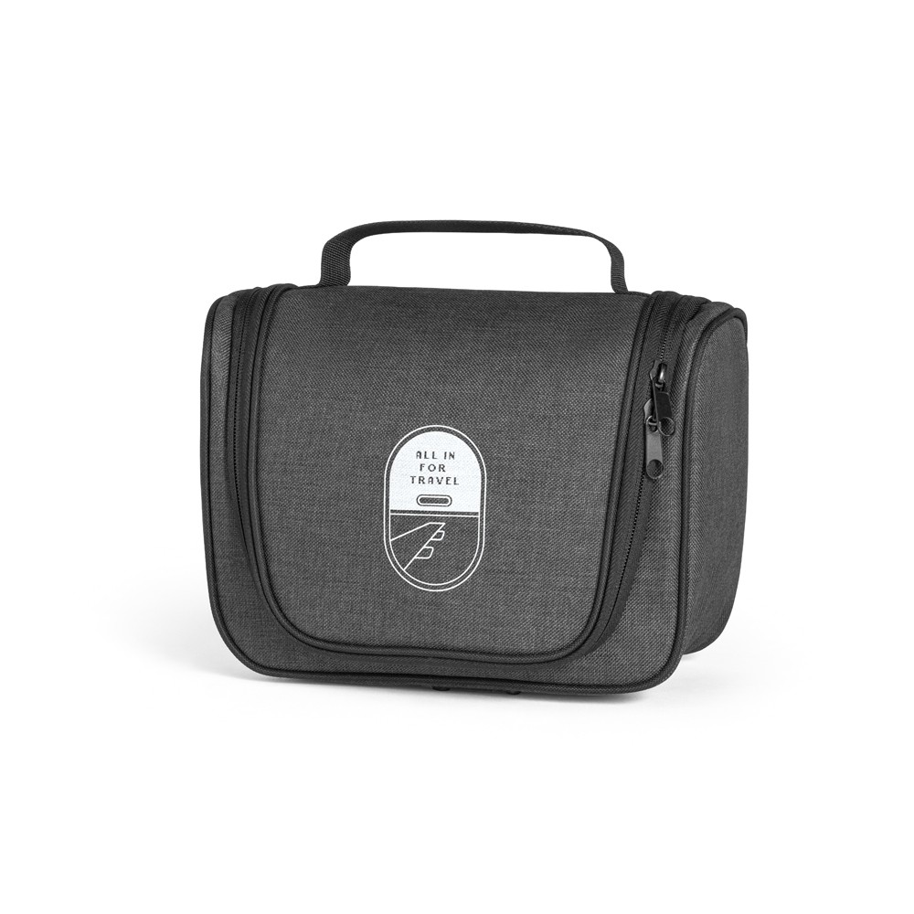 Nécessaire. 600D de alta densidade. Com vários bolsos interiores e gancho de pendurar. 250 x 180 x 105 mm - Informação Adicional