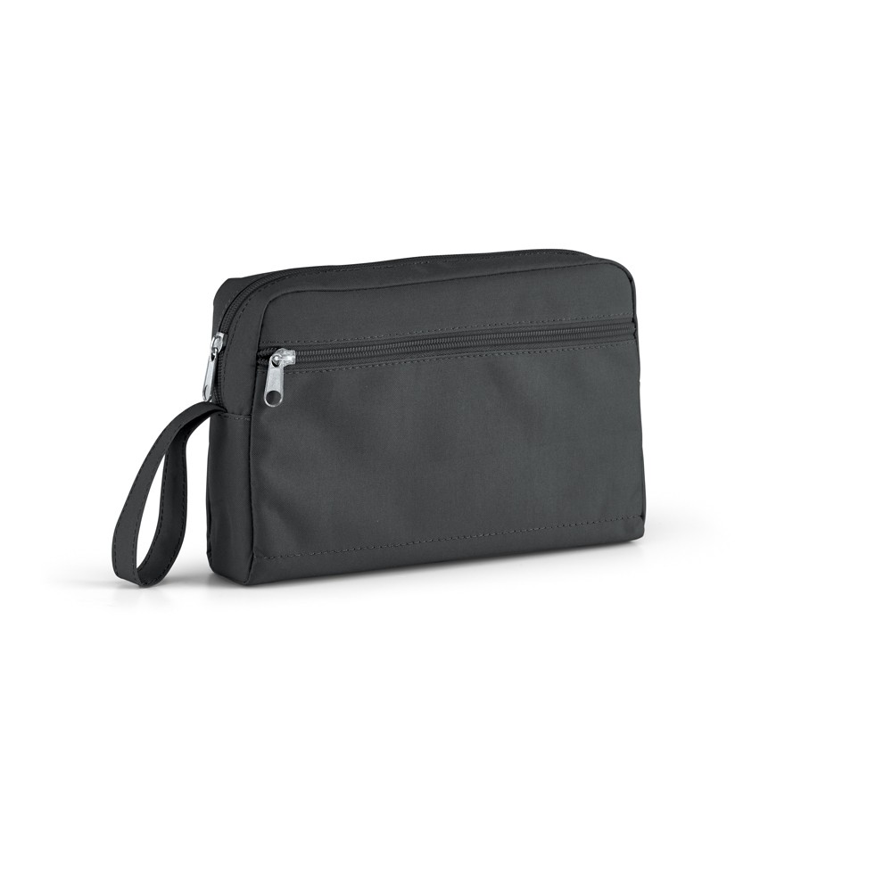 BOLSA DE COSMÉTICOS COM PEGA E BOLSO FRONTAL EM 300D. 240 X 160 X 55 MM