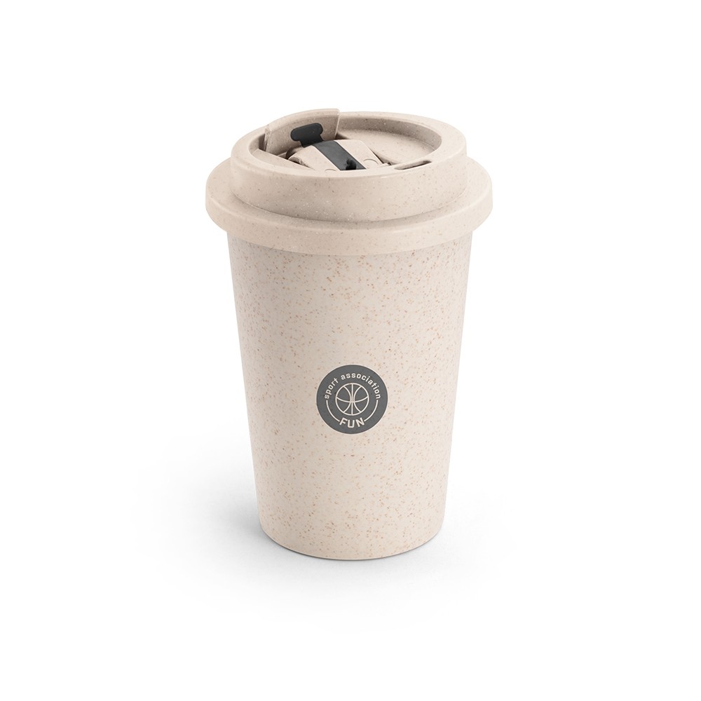 COPO DE VIAGEM EM FIBRA DE BAMBU (60%) E PP (40%) COM TAMPA FLIP TOP. CAPACIDADE ATÉ 380 ML. CERTIFICAÇÃO EU FOOD GRADE. Ø95 X 113 MM