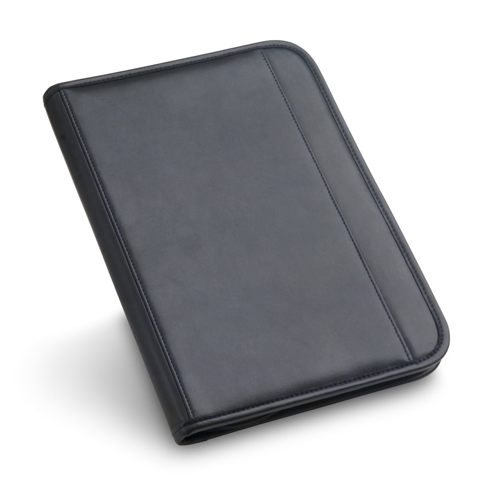 PASTA A4 EM C. SINTÉTICO, COM BOLSO FRONTAL E FECHO. O INTERIOR CONTÉM UM BLOCO DE 40 PÁGINAS PAUTADAS, SUPORTE PARA ESFEROGRÁFICA (NÃO INCLUSA), VÁRIOS BOLSOS E CALCULADORA DUAL-POWER DE 8 DÍGITOS, COM PILHA LR1130 INCLUSA. 250 X 345 X 20 MM