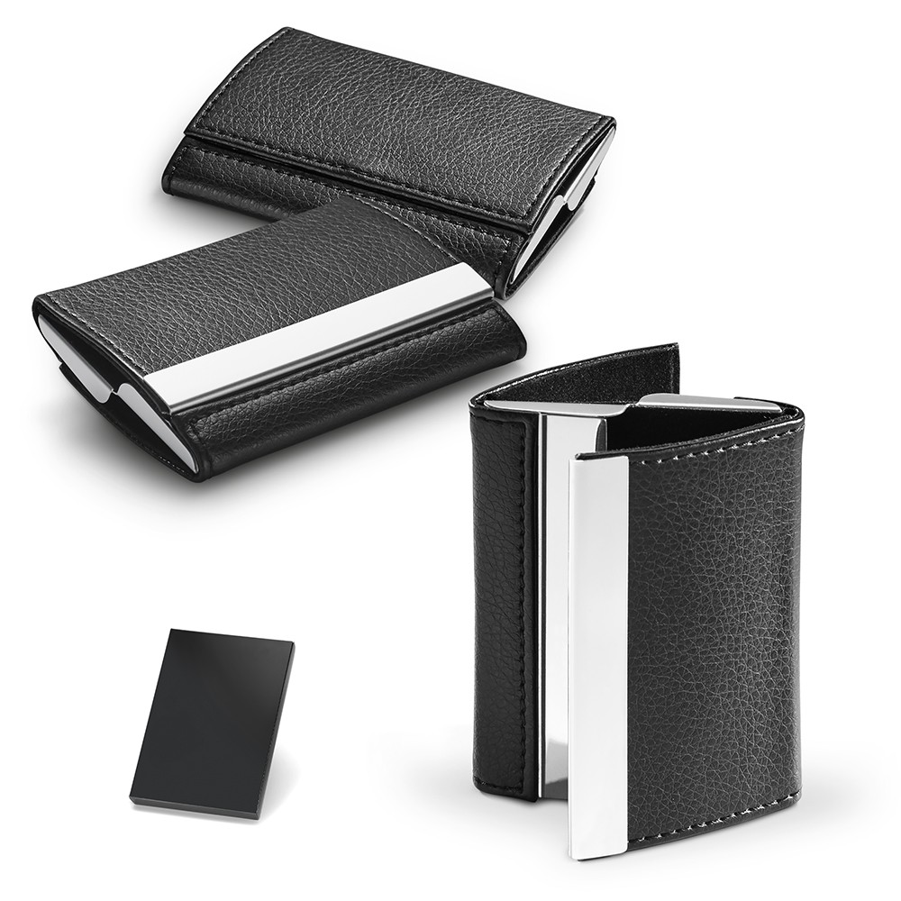 PORTA CARTÕES EM METAL E C.SINTÉTICO. FORNECIDO EM CAIXA. 93 X 67 X 19 MM | CAIXA: 98 X 72 X 22 MM