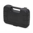 Kit ferramenta 8 peças em estojo plástico. Maleta plástica com detalhe retangular no centro frontal e verso liso, possui texturização no estojo e duas travas superiores. Acompanha: fita isolante, martelo, alicate, chave Philips, chave teste, chave de fenda, trena 2 metros e estilete. Altura: 17.5 x Largura: 24.8 x Espessura: 5.5cm. Medidas aproximadas para gravação: 4.3 x 8.8cm. Peso aproximado: 770 gramas.