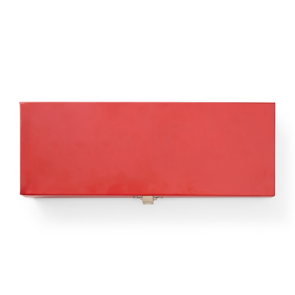 KIT FERRAMENTA COM 12 PEÇAS EM ESTOJO METÁLICO. CONTÉM: 1 CHAVE CATRACA, 1 CHAVE EXTENSORA E 10 SOQUETES. ESTOJO ALTURA: 5CM X LARGURA: 28.5CM X PROFUNDIDADE: 10.5CM. MEDIDAS APROXIMADAS PARA GRAVAÇÃO: 8CM X 25CM. TAMANHO TOTAL APROXIMADO: CHAVE CATRACA: 24.8CM X 4.6CM X 3.7CM / EXTENSOR: 12CM X 2.1CM. PESO APROXIMADO: 1791 GRAMAS.