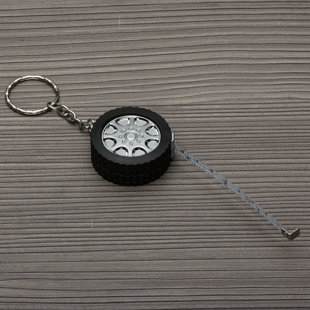 CHAVEIRO TRENA 1 METRO FORMATO PNEU BRILHANTE, MATERIAL EMBORRACHADO COM RELEVO. DETALHES DO ARO EM PLÁSTICO PRATA, VERSO LISO. TRENA NÃO POSSUI TRAVA. MEDIDAS APROXIMADAS PARA GRAVAÇÃO: 2.6 X 2.6CM. TAMANHO TOTAL APROXIMADO: 10.1 X 4.1CM. PESO APROXIMADO: 24 GRAMAS.