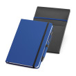 CONJUNTO DE CADERNO A5 E ESFEROGRÁFICA. O CADERNO DE CAPA DURA EM C. SINTÉTICO CONTÉM 160 PÁGINAS LISAS, FITA SEPARADORA E ELÁSTICO PARA FECHO DO BLOCO. A ESFEROGRÁFICA TEM ESCRITA EM AZUL. FORNECIDO COM CAIXA PRESENTE EM PP COM ELÁSTICO. ESFEROGRÁFICA: Ø10 X 137 MM | BLOCO: 140 X 210 MM | CAIXA: 155 X 214 X 13 MM