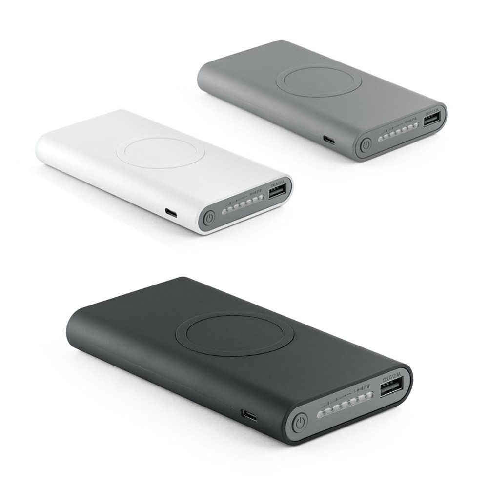 BATERIA PORTÁTIL EM ABS COM ACABAMENTO EMBORRACHADO E CARREGADOR WIRELESS SUPER RÁPIDO. BATERIA DE LÍTIO COM CAPACIDADE DE 10.000 MAH E TEMPO DE VIDA ≥ 500 CICLOS. OS 15W DE POTÊNCIA PERMITEM CARREGAMENTO SUPER RÁPIDO DOS DISPOSITIVOS MÓVIES. INDICADOR DE CARGA, PORTA DE ENTRADA MICROUSB, PORTA DE ENTRADA/SAÍDA USB-C E PORTA DE SAÍDA USB-A. INCLUSO CABO USB-C PARA CARREGAR A BATERIA. COMPATÍVEL COM DISPOSITIVOS MÓVEIS COM TECNOLOGIA DE CARREGAMENTO SEM FIOS. FORNECIDA EM CAIXA PRESENTE. 135 X 75 X 20 MM | CAIXA: 150 X 95 X 25 MM