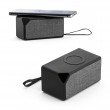 CAIXA DE SOM PORTÁTIL EM ABS COM ACABAMENTO EM BORRACHA E TECIDO NA PARTE FRONTAL. DE DESIGN SOFISTICADO, ESTA CAIXA DE SOM TEM UMA BATERIA DE 300 MAH E AUTONOMIA APROXIMADA DE 2 HORAS, COM TRANSMISSÃO SEM FIOS BT V5.0 E POTÊNCIA DE 3W. ADICIONALMENTE TEM TAMBÉM A FUNCIONALIDADE DE CARREGADOR WIRELESS, COM UMA POTÊNCIA DE 5 W. COMPATÍVEL COM DISPOSITIVOS MÓVEIS COM TECNOLOGIA DE CARREGAMENTO SEM FIOS. INCLUSO CABO DE CARREGAMENTO USB. FORNECIDA EM CAIXA PRESENTE. 108 X 56 X 54 MM
