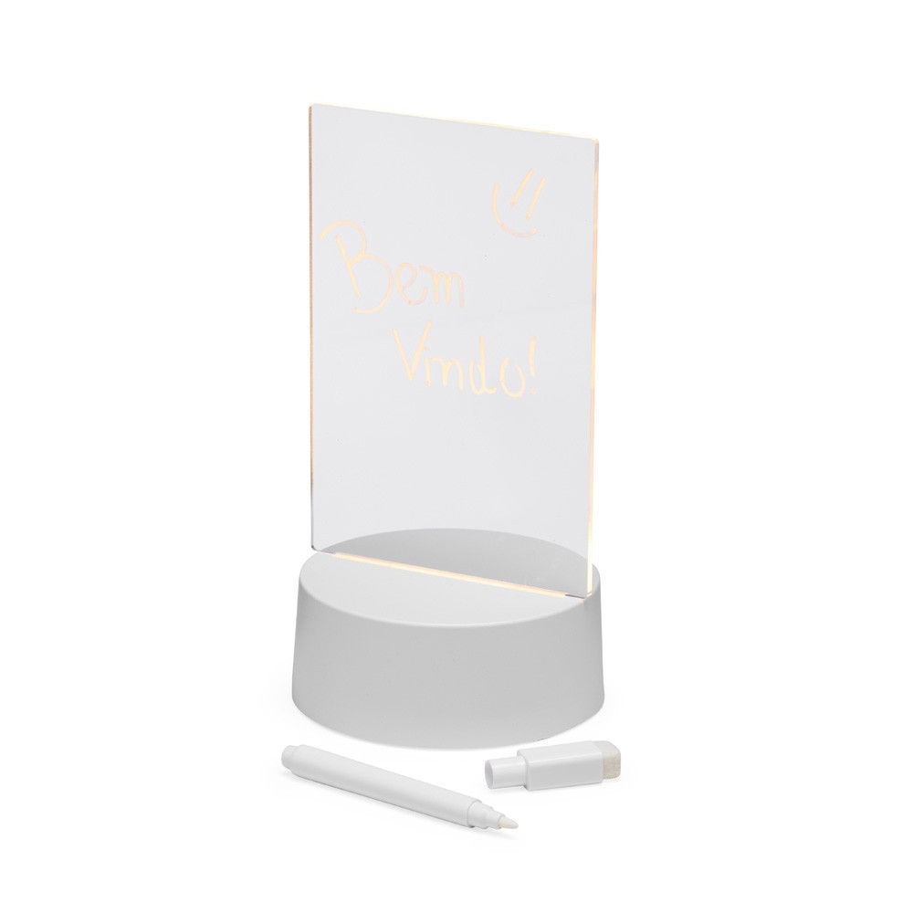 DEIXE QUALQUER ESPAÇO MAIS ACONCHEGANTE E REPLETO DE RECADINHOS INCRÍVEIS COM A NOSSA LUMINÁRIA DE LED PARA MESA. COM SUA TELA ACRÍLICA 3D, É POSSÍVEL SOLTAR A CRIATIVIDADE E DEIXAR MENSAGENS INSPIRADORAS, LEMBRETES IMPORTANTES OU ATÉ DESENHOS FOFOS, TUDO DE UM JEITO PRÁTICO E SUPER DIVERTIDO! COM UM FUNCIONAMENTO SUPER SIMPLES, ELA SE CONECTA COM CABO VIA USB INTEGRADO À BASE PLÁSTICA E JÁ ESTÁ PRONTA PARA ILUMINAR E ORGANIZAR O DIA. ACOMPANHA UMA CANETA PLÁSTICA COM APAGADOR INTEGRADO, TORNANDO A EXPERIÊNCIA AINDA MAIS INTERATIVA E FUNCIONAL. ESSA LUMINÁRIA É PERFEITA PARA ILUMINAR O AMBIENTE E DEIXAR RECADINHOS INCRÍVEIS! ALTURA: 19.3CM X LARGURA: 9.9CM X PROFUNDIDADE: 10CM. MEDIDAS APROXIMADAS PARA GRAVAÇÃO: CANETA: 0.5CM X 0.6CM/ BASE: 2.5CM X 2.5CM. PESO APROXIMADO: 123 GRAMAS.