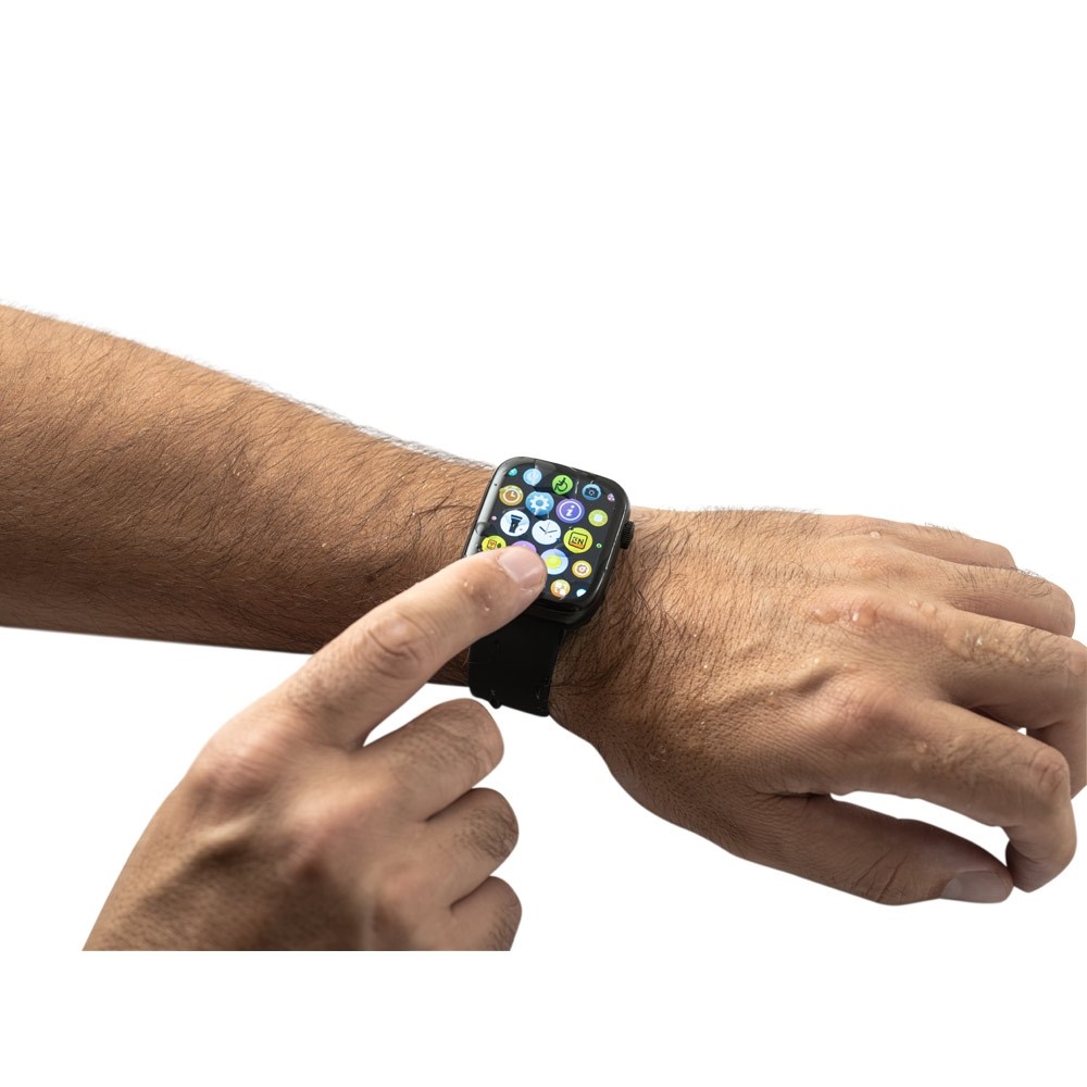 RELÓGIO INTELIGENTE COM TELA IPS DE 1.85 POLEGADAS COM BRACELETE EM SILICONE E À PROVA DE SALPICOS DE ÁGUA COM IPX4. BATERIA COM CAPACIDADE ATÉ 200 MAH, APROXIMADAMENTE 3 DIAS DE AUTONOMIA (STANDBY ATÉ 20 DIAS). A LIGAÇÃO BT PERMITE CONECTAR O SEU CELULAR À PULSEIRA, BEM COMO À APLICAÇÃO "HRYFINE" - COMPATÍVEL COM IOS E ANDROID. INCLUSO ALERTA PARA CHAMADAS RECEBIDAS E FUNCIONALIDADES DESPORTIVAS COMO: MONITORIZAÇÃO DO SONO, RITMO CARDÍACO, PRESSÃO ARTERIAL, OXIGÉNIO NO SANGUE, CRONÔMETRO E PEDÔMETRO. ALÉM DISTO, APRESENTA FUNCIONALIDADES DISTINTAS COMO LANTERNA, CÂMARA REMOTA, ALARME, ENCONTRAR TELEFONE E LEITOR DE MÚSICA. ESTE SMARTWATCH É IDEAL PARA O ACOMPANHAR A VIDA COTIDIANA. FORNECIDO EM CAIXA PRESENTE. 45 X 40 X 13 MM | CAIXA: 86 X 27 X 154 MM